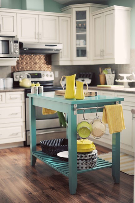 The kitchen island has space to store pots and pans, and can also be used as a breakfast nook. Teal Glass Canisters Vintage Kitchen These beautiful glass containers are a beautiful way to decorate your kitchen or living room. Teal Kitchen Island - Design photos, ideas and inspiration.